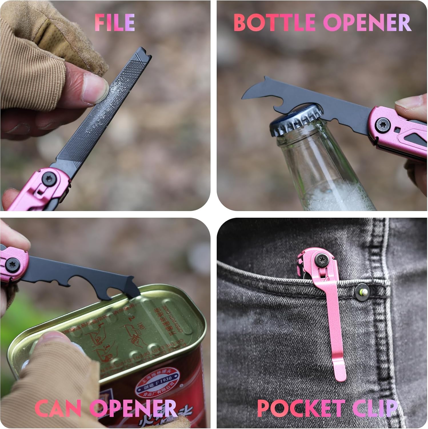 A PINK 9 IN 1 PORTABLE MULTITOOL THAT STANDS OUT FROM THE PACK