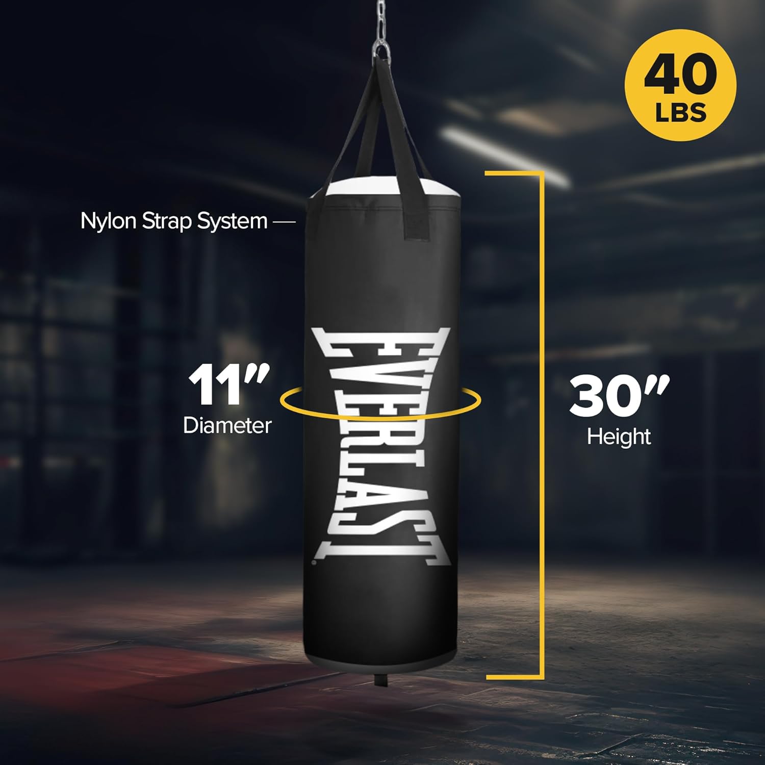 Get started on your boxing journey with the Everlast Core Heavy Bag. Crafted from a highly resilient poly-canvas material, this heavy bag is designed to withstand the test of time, ensuring longevity and reliability for your intense workout sessions. The robust construction extends to the molded zipper, which is built with precision to endure the rigors of your toughest training routines. Hanging this heavy bag is a seamless process, thanks to the reinforced nylon straps equipped with sturdy D-rings. These features not only simplify the setup but also guarantee a secure and stable attachment, allowing you to focus on your punches, kicks, and strikes with complete confidence. Designed for optimum performance and user comfort, the specially blended synthetic filler mix inside the bag ensures optimal impact dispersion. This unique blend not only absorbs the force of your strikes but also provides a forgiving surface for your knuckles and wrists. Say goodbye to unnecessary strain and discomfort during your training sessions, as this heavy bag is engineered to prioritize both performance and security. With an impressive 11-inch diameter, this heavy bag offers a substantial target for your training, allowing you to hone your skills and enhance your overall fitness levels. Whether you’re a seasoned professional or just starting on your fitness journey, the Everlast Core Heavy Bag is the ideal companion, combining durability, ease of use, and performance in a single versatile package.
