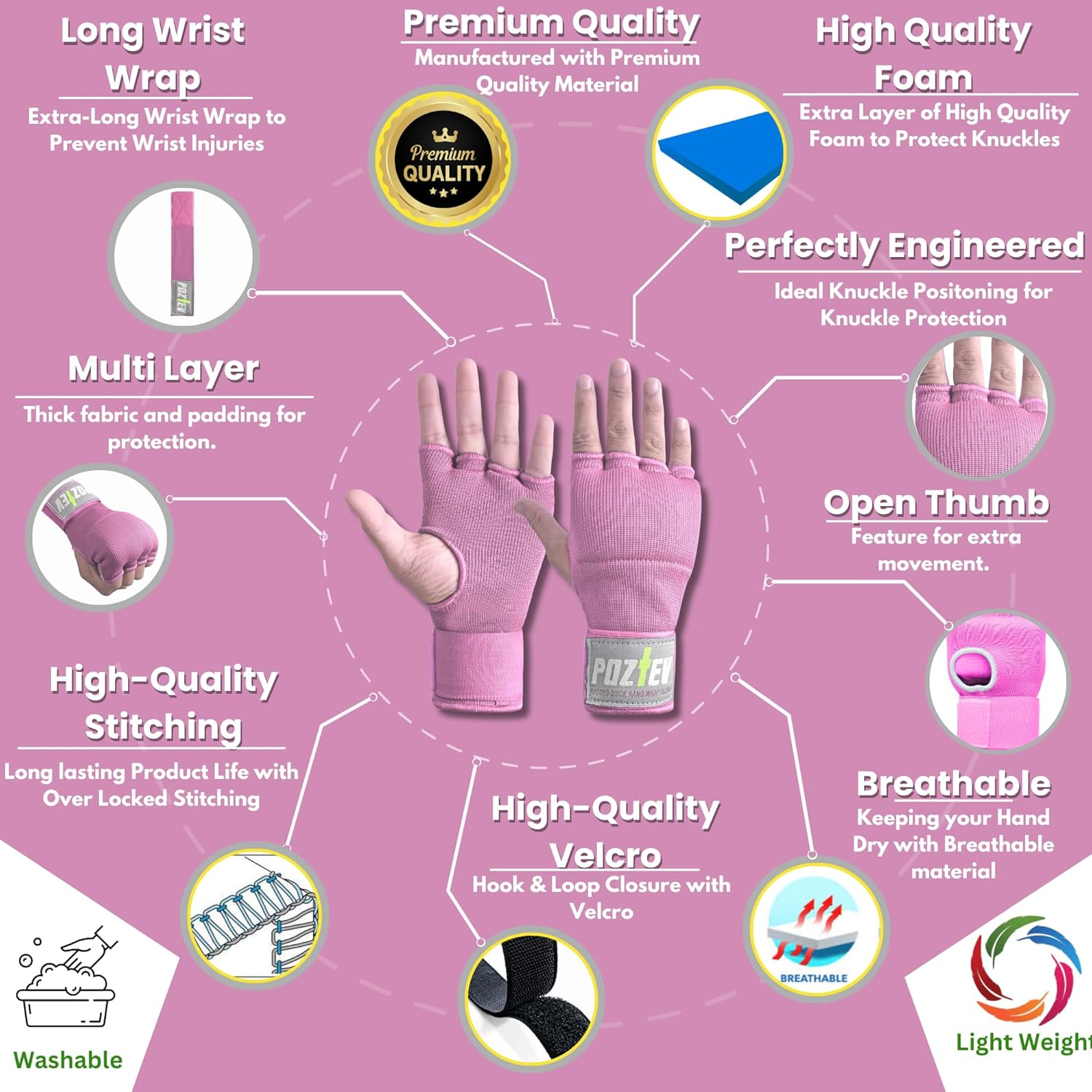 BREATHABLE & COMFORTABLE – Engineered with breathable fabric, POZTEV boxing inner gloves keep your hands cool and dry, allowing you to focus on your performance without discomfort.