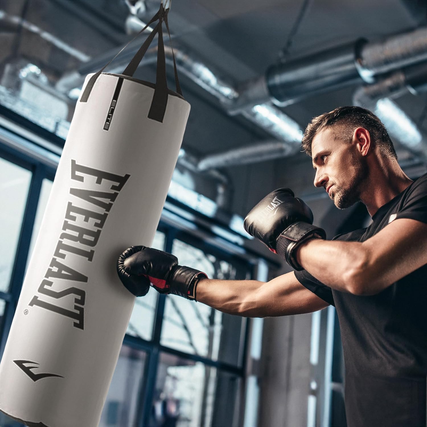 Train with confidence and power with the Everlast PowerLock 100 Lb Heavy Bag. A recycled synthetic/natural fiber and sand fill improves impact feedback and strike deadening, and the PVC exterior resists wear and tear punch after punch. An included chain assembly and heavy bag ceiling anchor help you safely mount your bag on a stand or on the ceiling, and the bottom D-ring provides added security.