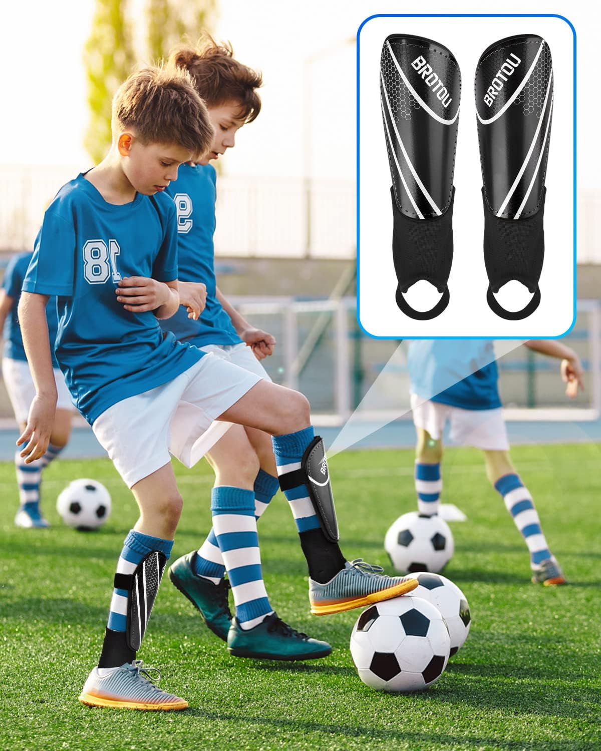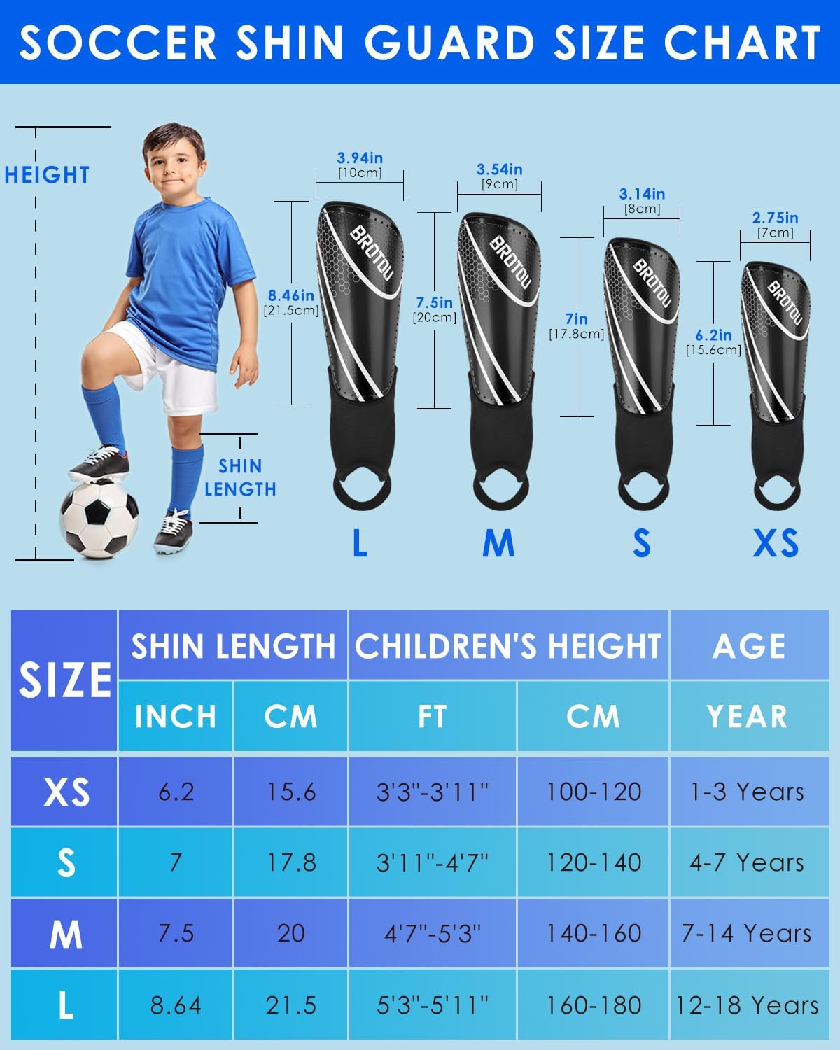 Ergonomically Designed Shin Guards: The curved design of BROTOU shin guards not only fit the legs better but also shock absorption and cushioning. Our shin pads are designed for kids and youth, fit their curvature of the calf perfectly. (NOTE: In order to buy a shin guard that fits your child better, please measure his shins when purchasing. Ideally, the shin guard should cover the shin area from above the foot to below the knee, approximately 2.5-5.1 centimeters.)