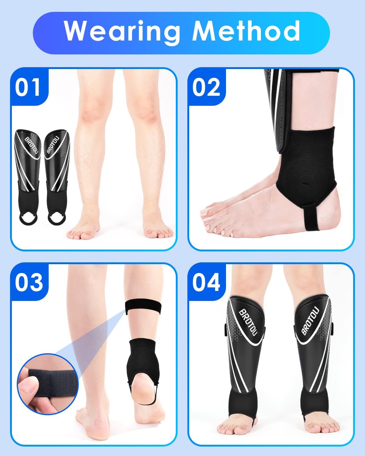 Upgrated Designed Shin Protector: Compared to the traditional one, BROTOU soccer shin pads are designed with ankle support pads. The breathable elastic fabric could fit the ankle better. Providing comprehensive protection to the calf and ankle in the mean time