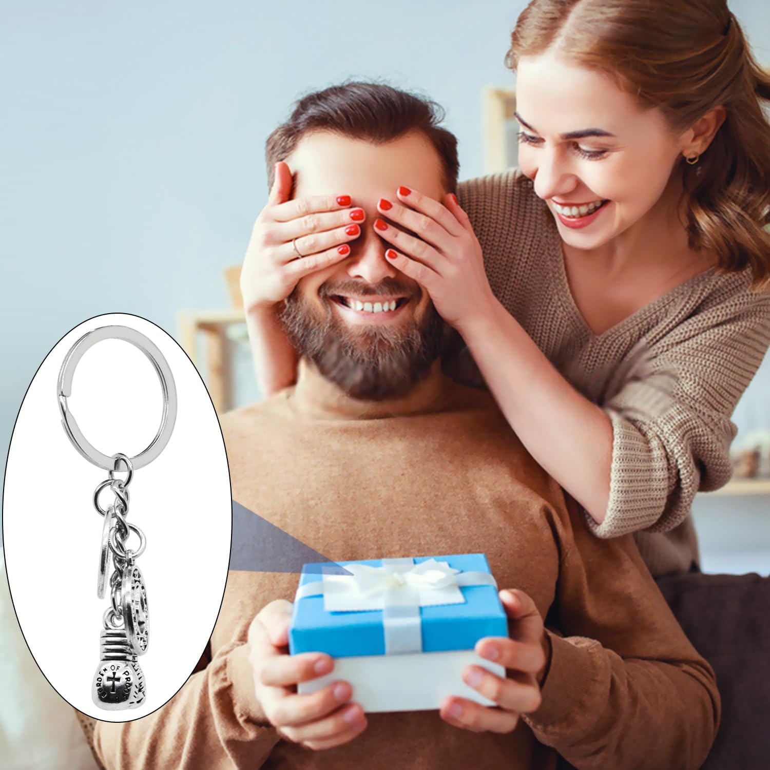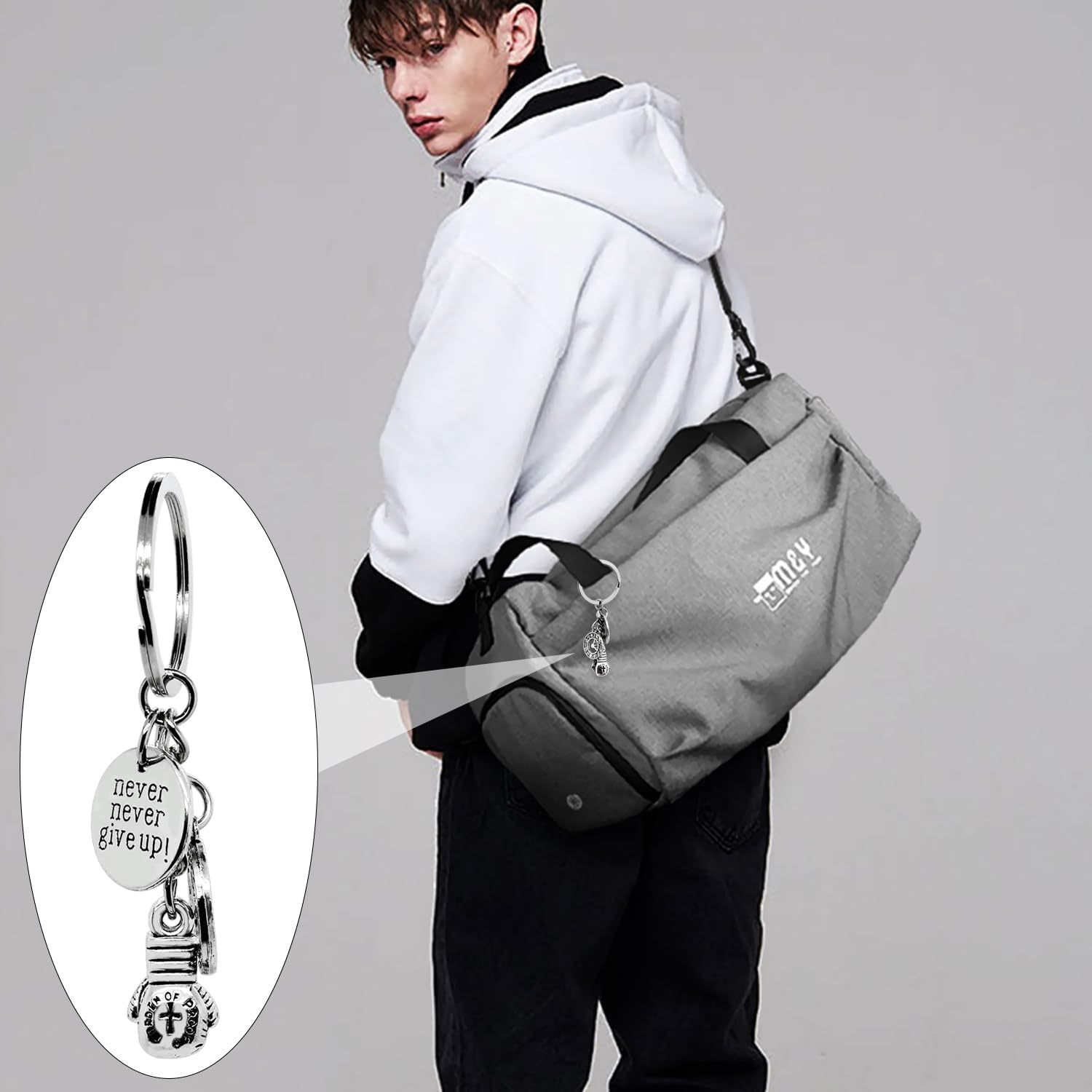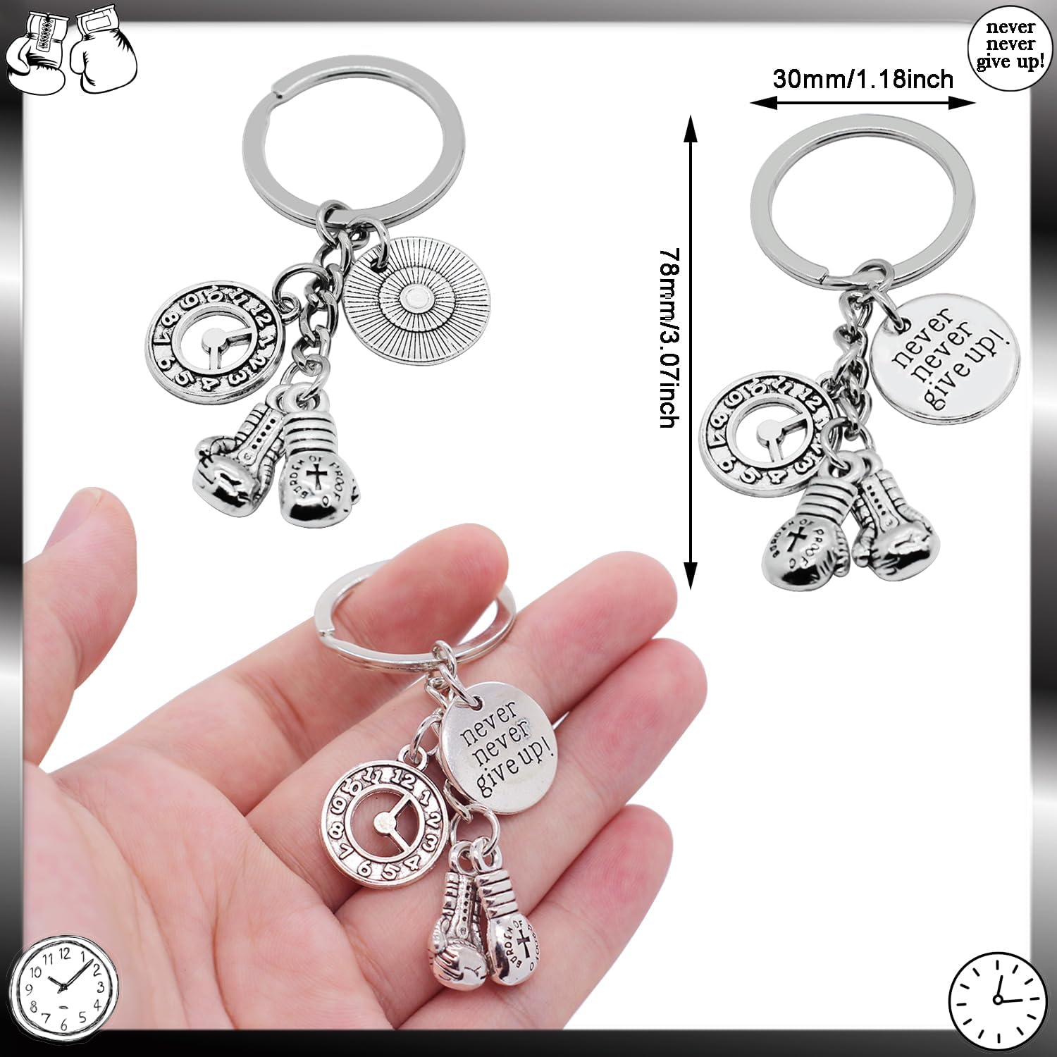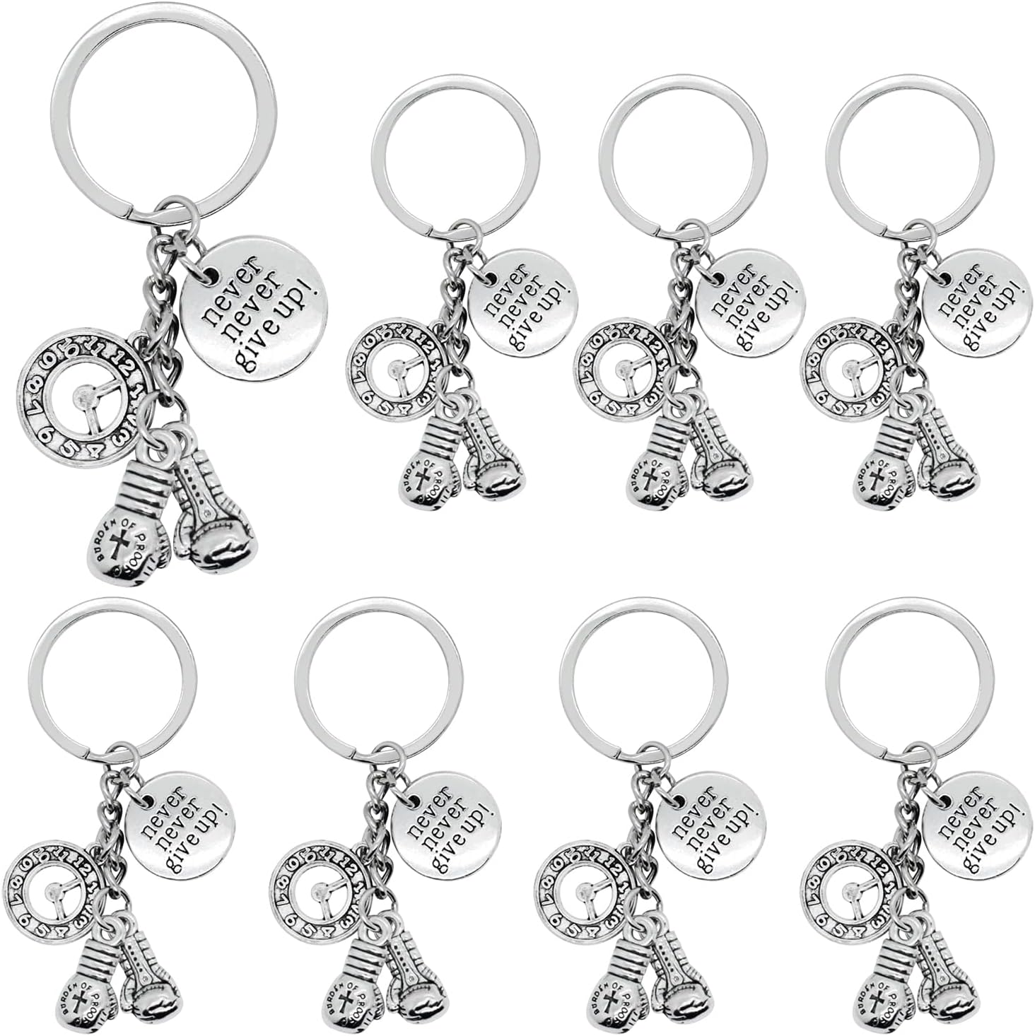 8 x never give up boxing keychain