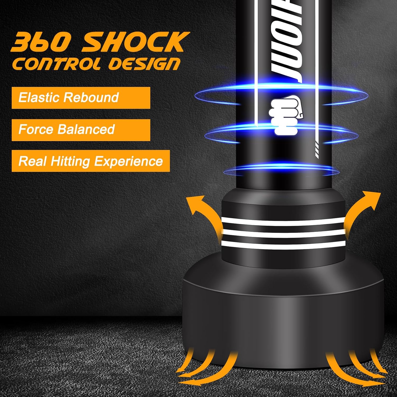 Punching Bag for Adults with Stand:The standing punching bag for adults is made of high-quality PVC, which is thick, durable, and stretchy. The standing punching bag is rebound tested and will bounce back quickly after you hit/kick. Sandbags are also soft and safe for small children