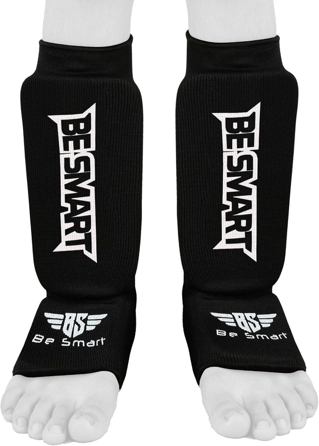 ✔️ Be Smart Muay Thai Shin Guards are a great example of combined functionality and Protection.✔️ Be Smart MMA Shin Pads Instep features Dri-Fit moisture-management technology. The soft synthetic fabric wicks away sweat to keep you dry and comfortable. These Kickboxing gears are ideal for mixed martial arts as they have High Density EVA foam padding to protect the Shin from crucial bone and muscle damage. The padded Instep section provides further protection that is very important for those high kicks which are signature move for many fighters.✔️ Be Smart Shin Insteps are easy to put on as the Poly Cotton material is flexible and very comfortable. The compression of the material used also offers similar benefits as compression tights, increasing blood circulation.✔️ Be Smart Shin Insteps are a must have MMA, Kickboxing and Muay Thai equipment for any fighter and an alternative to the traditional MMA or Thai Style Shin Guards. These are machine washable and designed for moisture and bad odor management.✔️ Be Smart Shin Guards are available in Kids, Youth and Adult sizes for both Males and Females. Please refer to the sizing charts given in the pictures before placing your order for the desired size.