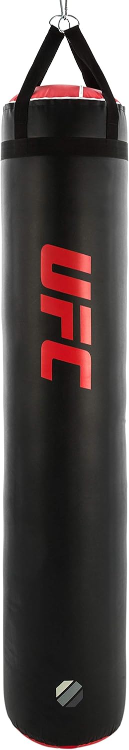Increase your Muay Thai, boxing, kickboxing, or MMA striking power with the UFC Pro Thai 100lb heavy bag. Made from grade a cowhide leather the Thai heavy bag is the top option for premium Quality and durability. Made with soft fiber filling and reinforced stitching throughout, this bag was designed to last to help you reach your MMA goals. It is 6’ tall, Weighs 100lbs and has a silent nylon strap hanging system. Comes prefilled so you can start training immediately.