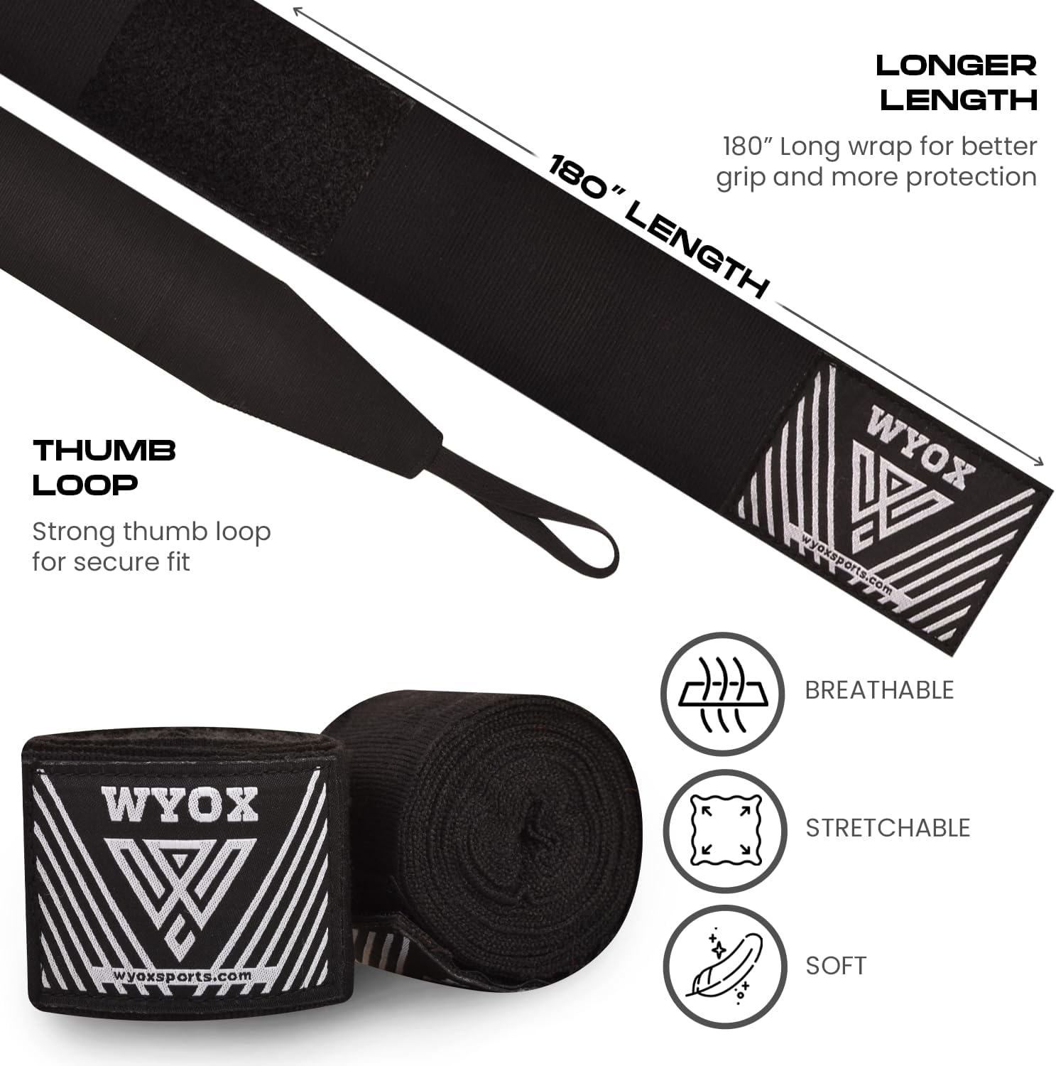 ➤ Perfect Fit with 180 Inch Boxing Hand Wraps: Our 180 inch hand wraps boxing are the perfect length for full hand and wrist coverage. These boxing hand wraps 180 provide secure protection for any high-impact training session, from sparring to bag work.