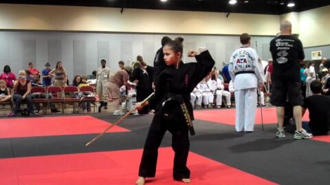 8 Year Old Rayna Martial Arts Stick Fighting Demonstration Taekwondo