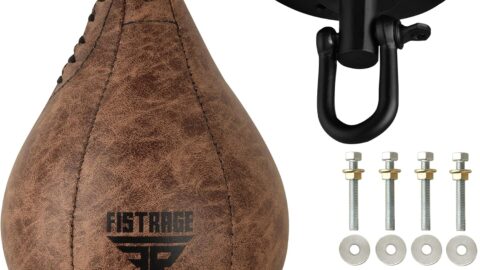 FISTRAGE Speed Bag Boxing Ball Leather MMA Muay Thai Training Punching Dodge Striking Kit with Free Hanging Swivel Workout Speedball Kicking Platform Equipment