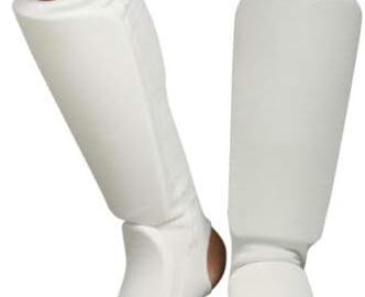 Cloth Shin & Instep Guard Taekwondo, Martial Arts, MMA Foot Protective Gear Protector for Sparring (Black/White; Child Small to Adult XL)