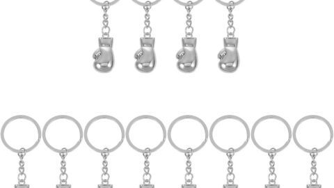 LUOZZY 12 pcs Boxing Glove Keychain Metal Mini Boxing Glove Key Ring Hanging Pendants Bag Charms for Sports Party Favors Team Gift Silver