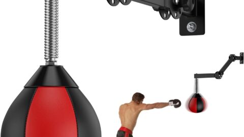 Speed Bag Boxing Punching Bag, Wall Mount Height Adjustable & Fold Speed Bags for Boxing, Wall Bracket Boxing Reflex Ball, Boxing Bag as Adults Teens and Kids, Fits Home Gym Workout