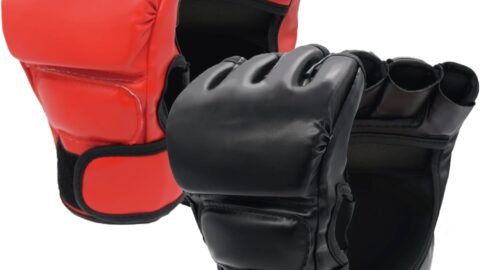 ZooBoo MMA Gloves, Half-Finger Boxing Fight Gloves MMA Mitts with Adjustable Wrist Band UFC Gloves for Sanda Sparring Punching Bag Training (One Size Fits Most)