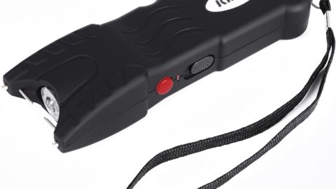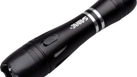 SABRE 2-in-1 Tactical Stun Gun with LED Flashlight, Self Defense Stun Gun with 2.517 µC Charge Produces Intolerable Pain, 130 Lumen LED Light, Safety Switch, Belt Holster, Rechargeable Battery