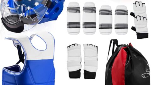 11 Pcs Taekwondo Sparring Gear Equipment Set Head Guard Chest Guard Arm Guard Groin Guard Leg Guard Foot Protector Fighter Gloves Bag Mouth Guard Kicking Target for Boys