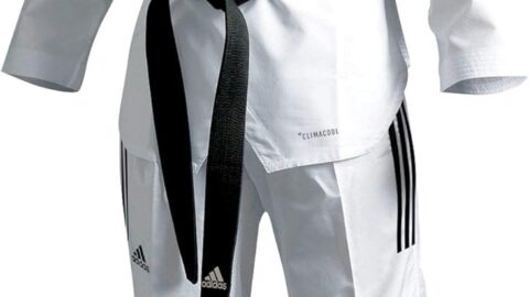 adidas Eco Fighter 3 Taekwondo Black V-Neck Ultralight Sparring Uniform w/ 3 Stripes – 100% Polyester