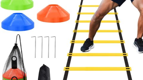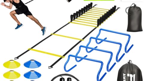 Speed Agility Training Set, Includes 1 Agility Ladder, 4 Steel Stakes, 1 Sports Headband,1 Jump Rope, 10 Disc Cones and Gym Carry Bag – Speed Training Equipment for Soccer Football Basketball