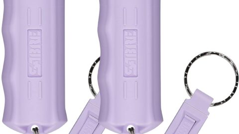 SABRE Defense Spray, 3-in-1 Formula Contains Max Strength Pepper Spray, CS Military Tear Gas & UV Marking Dye, Quick Release Key Ring for Easy Carry, Finger Grip for More Accurate Aim, 0.54 fl oz