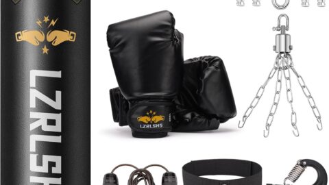 Punching Bag for Adults, 4ft PU Leather 6 in 1 Heavy Boxing Bag Set, Punching Bag with 12oz Boxing Gloves, Hand Wraps, etc. Hanging Bag for MMA Karate Kickboxing Muay Thai Boxing Training – Unfilled