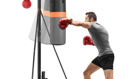 Goplus Punching Bag with Stand for Adults, Free-Standing Heavy Bag Stand with Height Adjustable Speed Bag for Boxing, Sandbag Rack Bracket Station for Home Gym Workout Fitness, Holds up to 220LBS