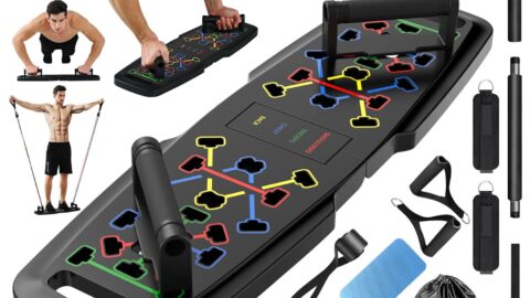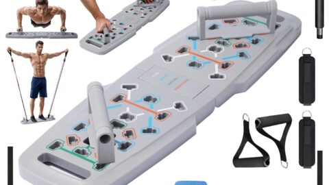 Push Up Board,Home Gym,Portable Exercise Equipment,Pilates Bar & 20 Fitness Accessories with Resistance Bands & Ab Roller Wheel,Full Body Workout at Home.