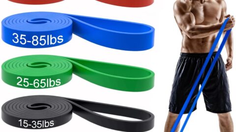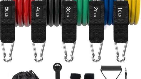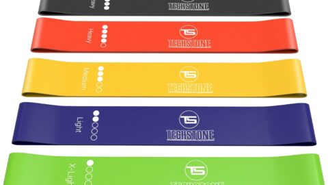 TechStone Resistance Bands Set for Men and Women, Pack of 5 Different Levels Elastic Band for Home Gym Long Exercise Workout – Great Fitness Equipment for Training, Yoga – Free Carrying Bag