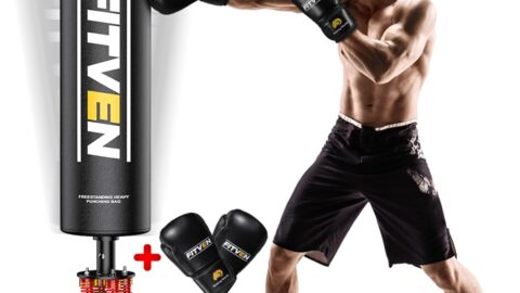 FITVEN Freestanding Punching Bag with Boxing Gloves Heavy Boxing Bag with Suction Cup Base for Adult Kids – Men Stand Kickboxing Bag