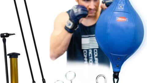 Double End Punching Bag – Speed Bags for Boxing – Double End Bag Boxing – PU Leather Double End Bag – Boxing Double End Bag – Boxing Training Equipment w. Adjustable Cords, Air Pump, Installation Kit