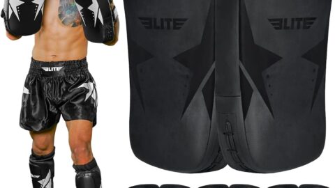 Elite Sports Muay Thai Kickboxing Curved Training Kick Pads (2 PCS) Coaching Kick Boxing, MMA, Taekwondo, Karate Punching, Knee, Foot and Elbow Target Kicking Strike Shield Pad Pair for Martial Arts
