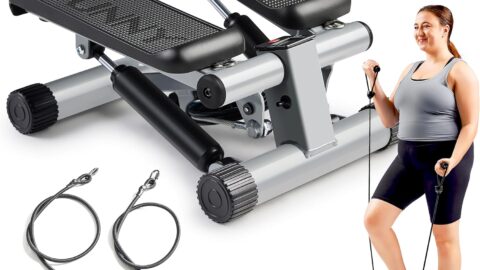 Sunny Health & Fitness Mini Steppers for Exercise at Home, Stair Step Workout Machine with Resistance Bands, Full Body Cardio Equipment, Optional Free SunnyFit App Connection Smart Stepper