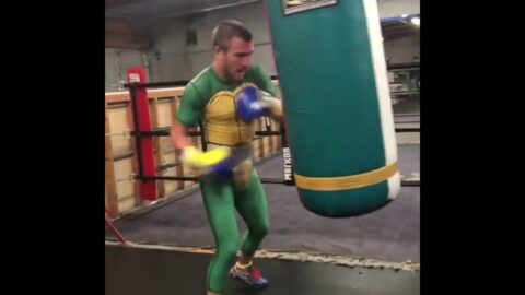 Lomachenko working the bag as a ninja turtle!